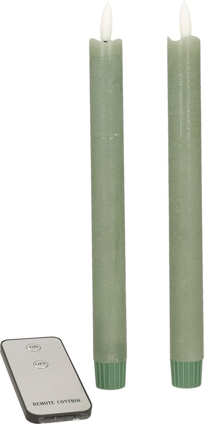 Anna's Collection LED dinerkaarsen set van 2x stuks in de kleur jade groen. Breng sfeer en elegantie naar je eetkamer met deze prachtige LED kaarsen. Deze rustieke kaarsen in een stijlvolle jade groene kleur, zijn perfect voor het geven van een warme en uitnodigende ambiance bij elke gelegenheid.